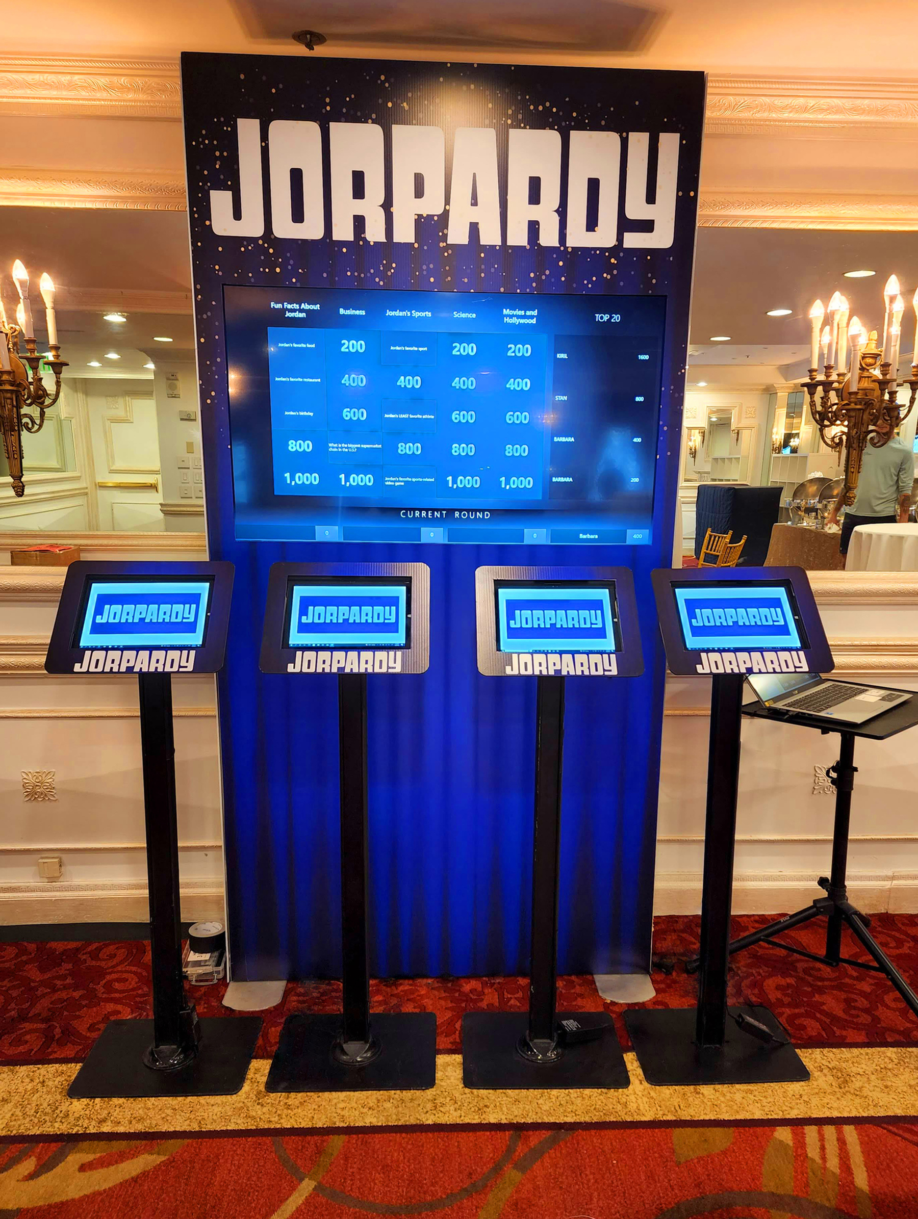 Join our quiz competition with custom tailored categories of questions for your party! The guests are given general knowledge clues as they must answer by identifying the person, place, thing or idea that clue describes.