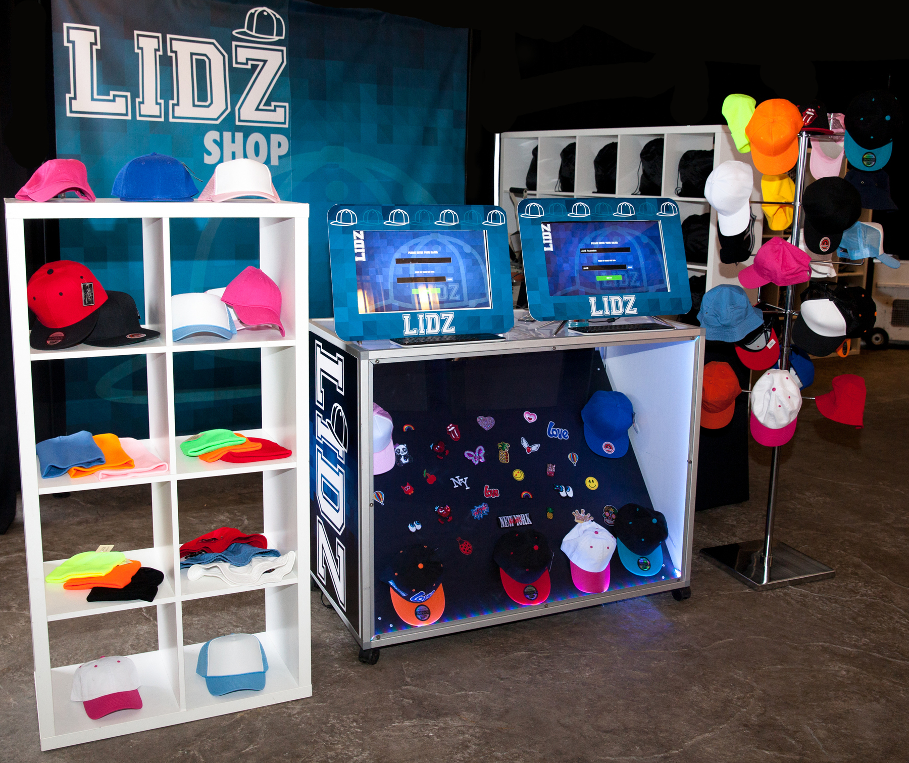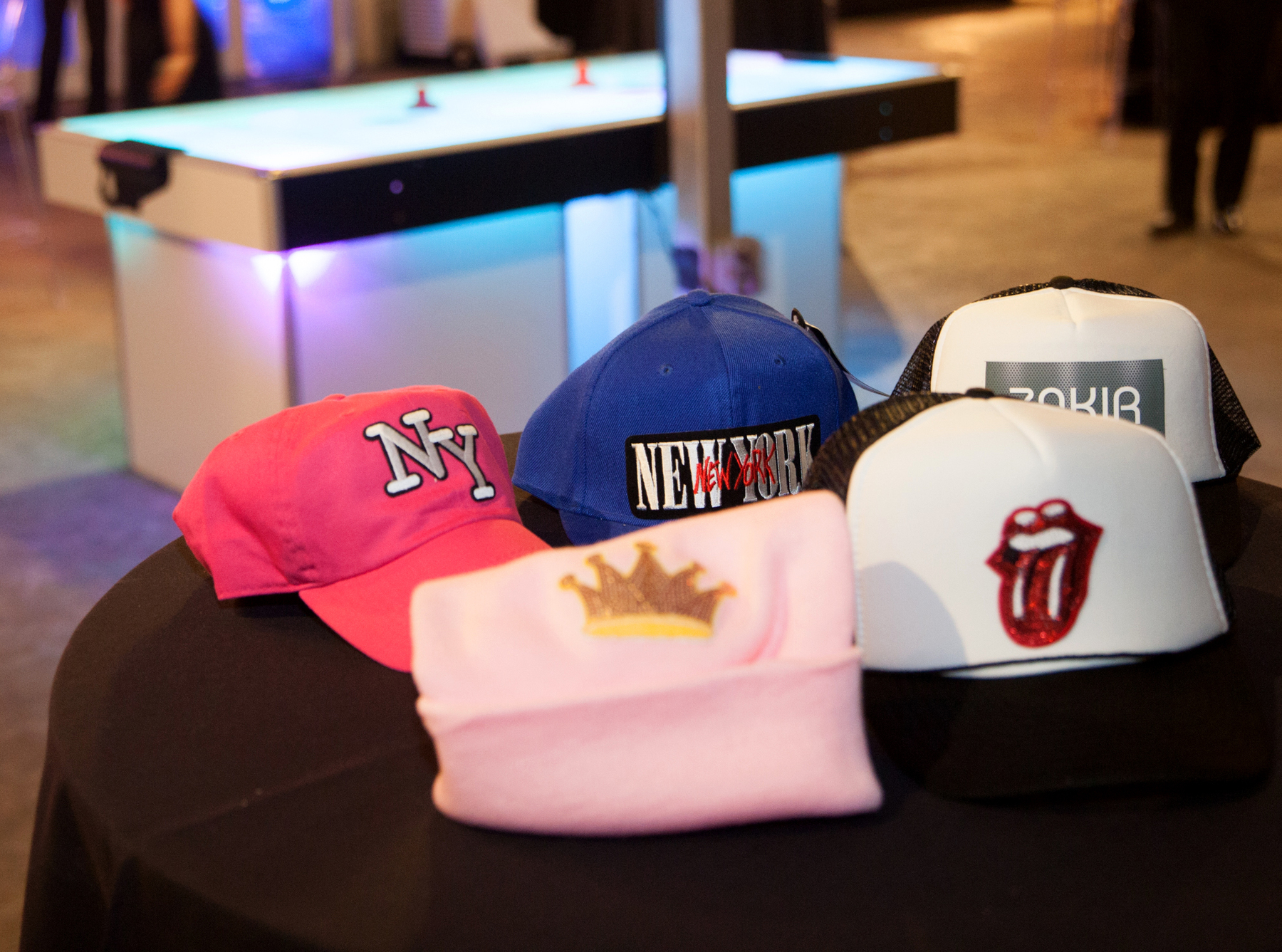 Make your own hat! Select from an assortment of hat colors and styles: baseball hats, beanies, flat-tops and much more. Choose a patch – lips, NY, emoji, and many more! Or create a completely custom design by typing your name, selecting a font and background for your hat. Hats are produced and distributed by the end of the party!